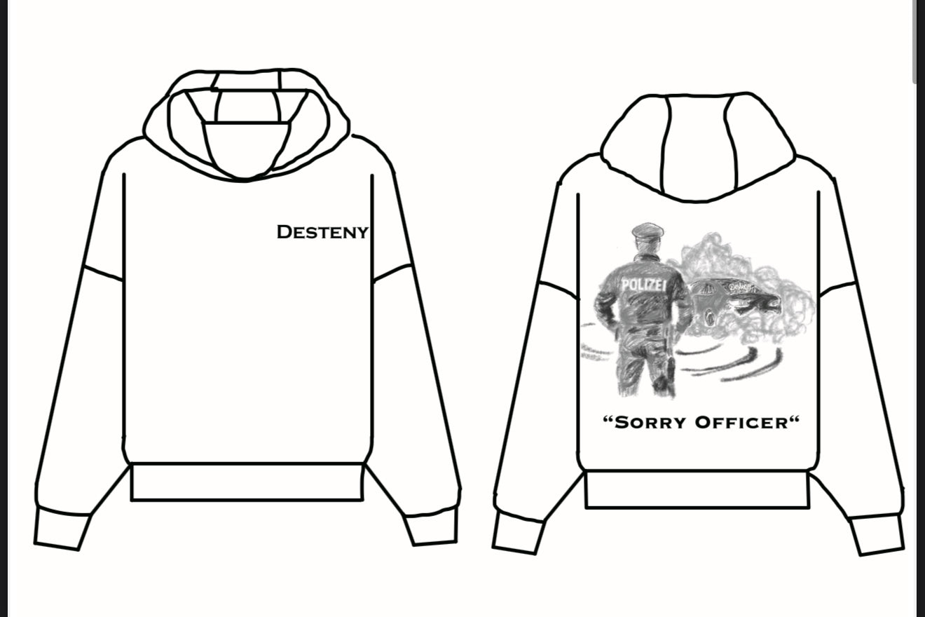 Das DESTENY „Sorry Officer“-Hoodie verbindet Streetwear-Style mit der Car-Kultur.